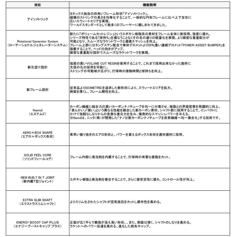 素材:フレーム/高弾性カーボン+VOLUME CUT RESIN+タングステン、シャフト/高弾性カーボン+Namd、ジョイント/新内蔵T型ジョイント