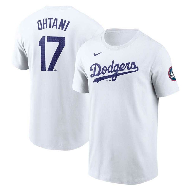 ナイキ ロサンゼルス・ドジャース 大谷翔平 ネーム&ナンバー入りTシャツ MLB 東京シリーズ 開幕戦 袖パッチ 10ALD901EP