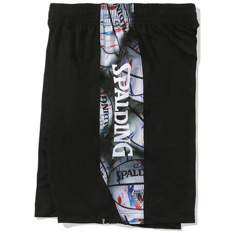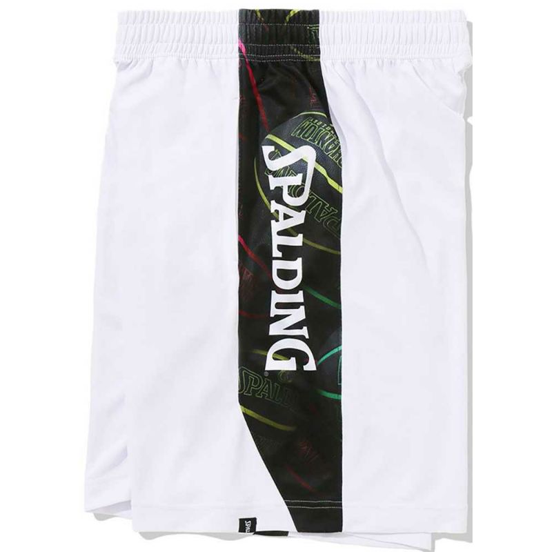 色鮮やかなSPALDING定番ボールのボールパターンをサイドで切り替えたデザインのプラクティスパンツ。