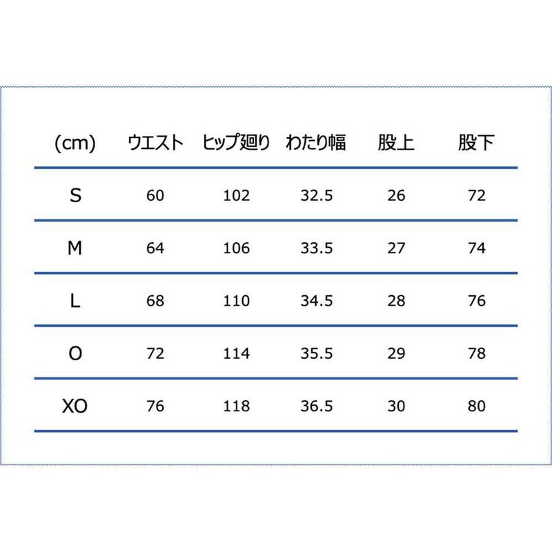 寸法:総丈104cm、股下76cm(Lサイズ)