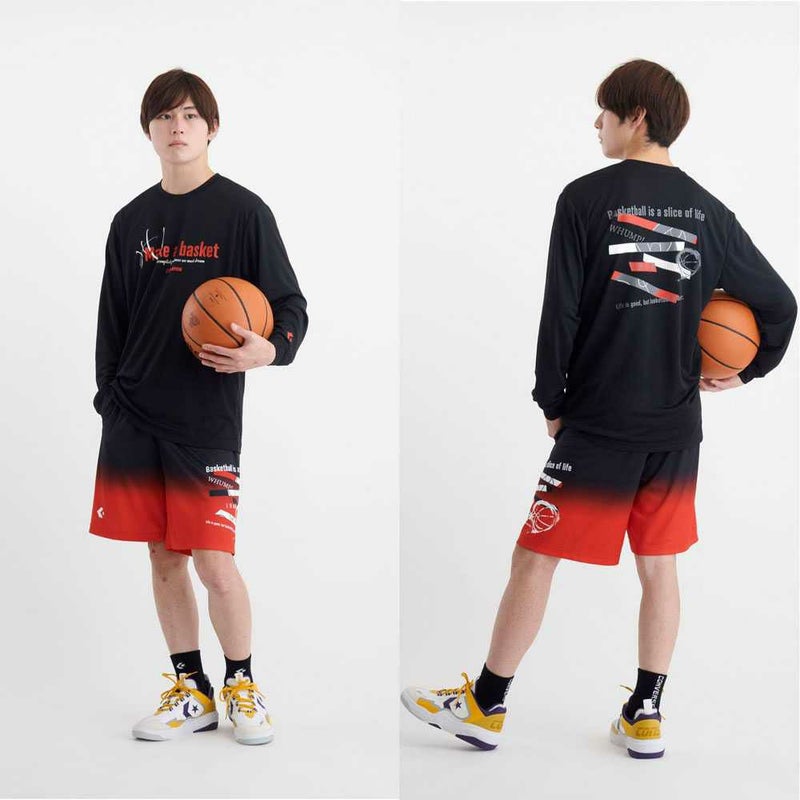 バスケ要素をアレンジしたデザインに裾からのグラデーションが特徴のプラクティスパンツ。