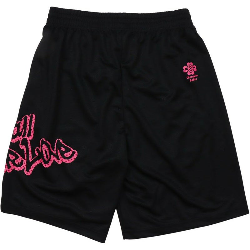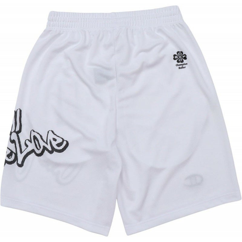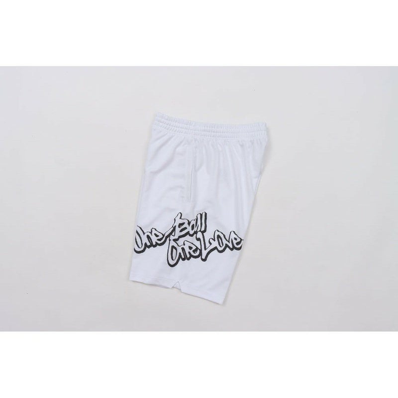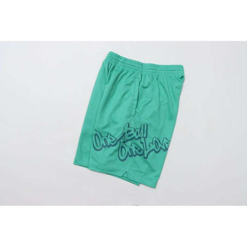 左側に「ONE BALL ONE LOVE(ワンボール ワンラブ)」をラバープリントで入れ、右裾にはCロゴを刺繍しています。
