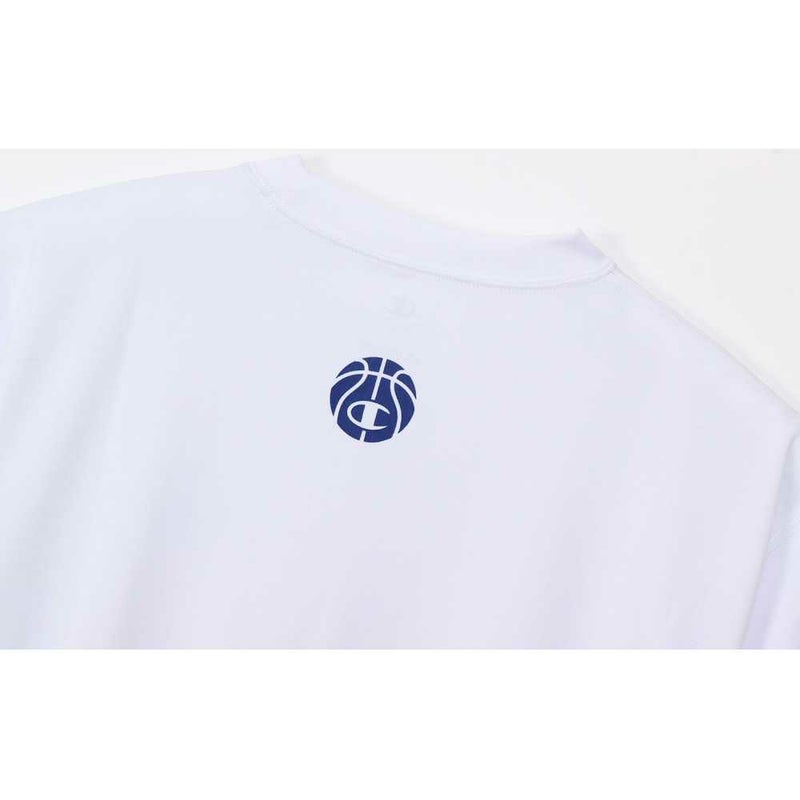 左胸にはCHAMPION(チャンピオン)ロゴ、背中襟元にはバスケットボールとCロゴを組み合わせたグラフィックをラバープリントで入れています。