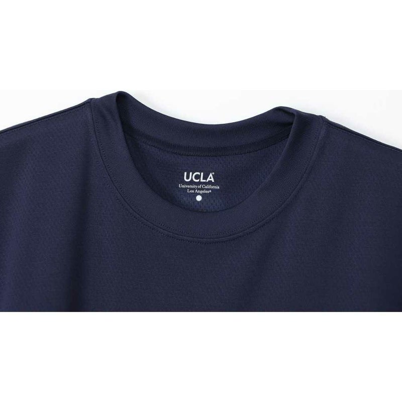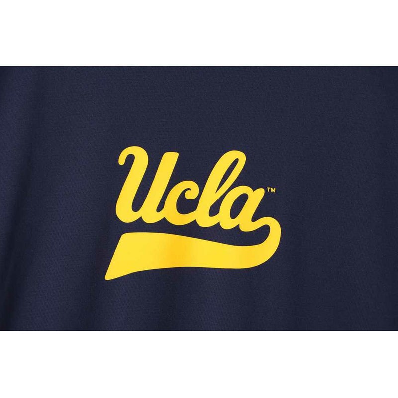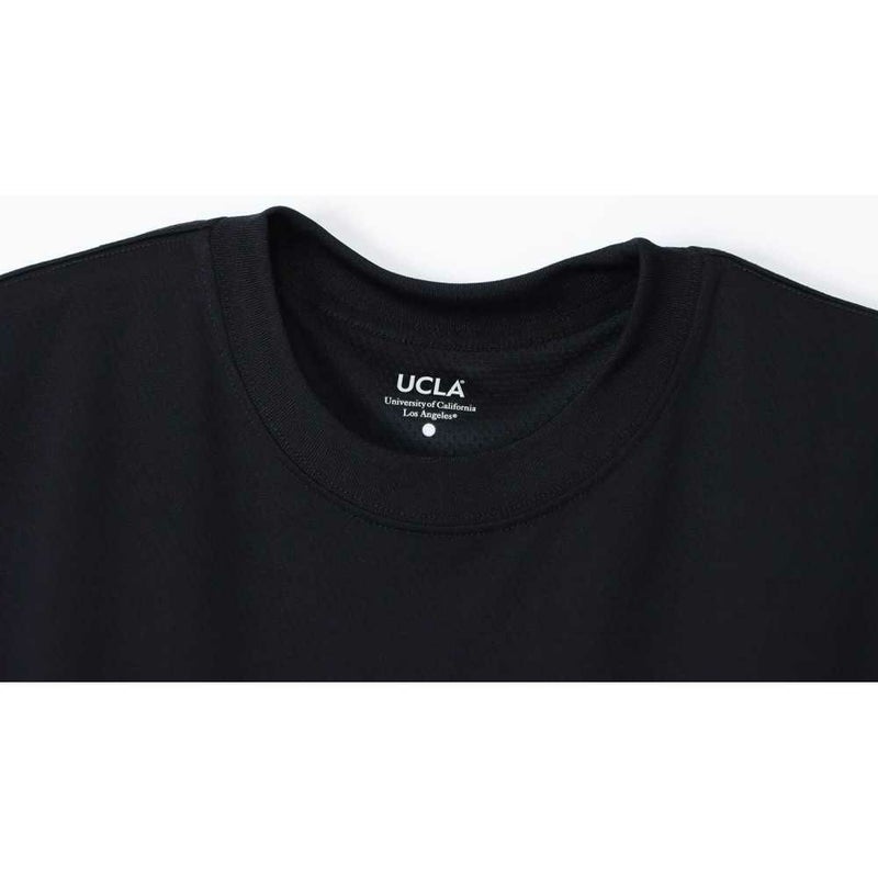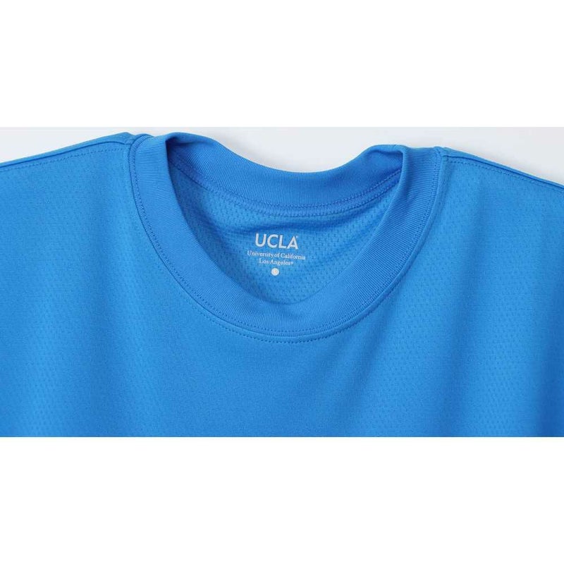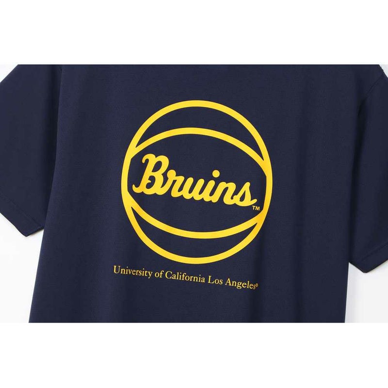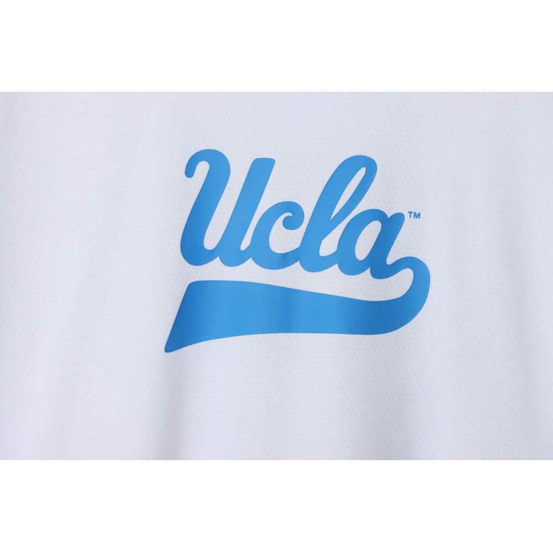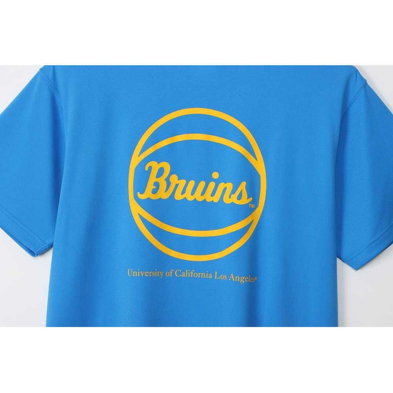 胸には「UCLA(ユーシーエルエー/カリフォルニア大学ロサンゼルス校)」のロゴ、背中にはバスケットボールと「BRUINS(ブルーインズ)」、「UNIVERSITY OF CALIFORNIA LOS ANGELES(ユニバーシティ オブ カリフォルニア ロサンゼルス)」を組み合わせたグラフィックをラバープリントで入れています。