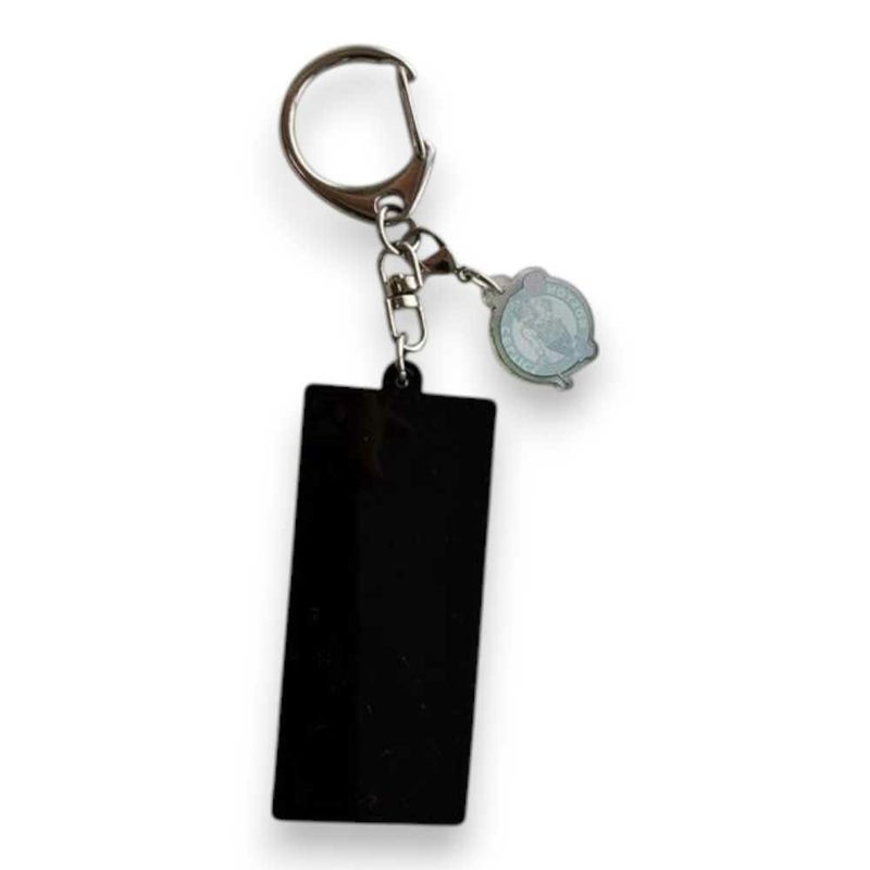 チームロゴチャーム付きのコート柄のキーホルダー。