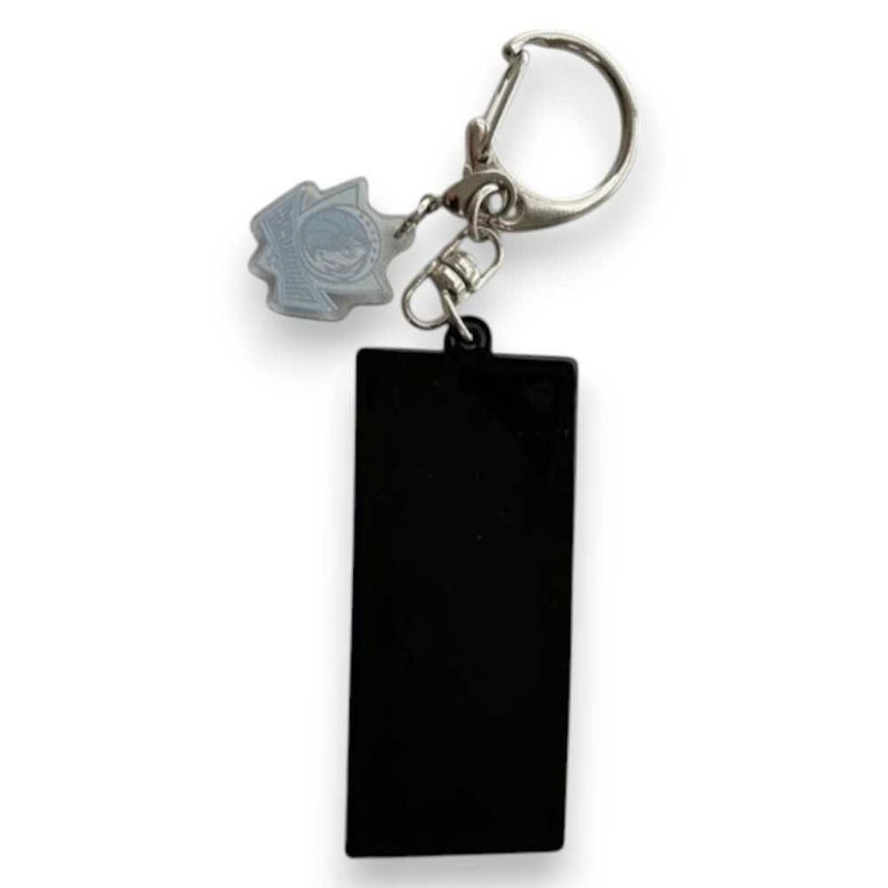 チームロゴチャーム付きのコート柄のキーホルダー。