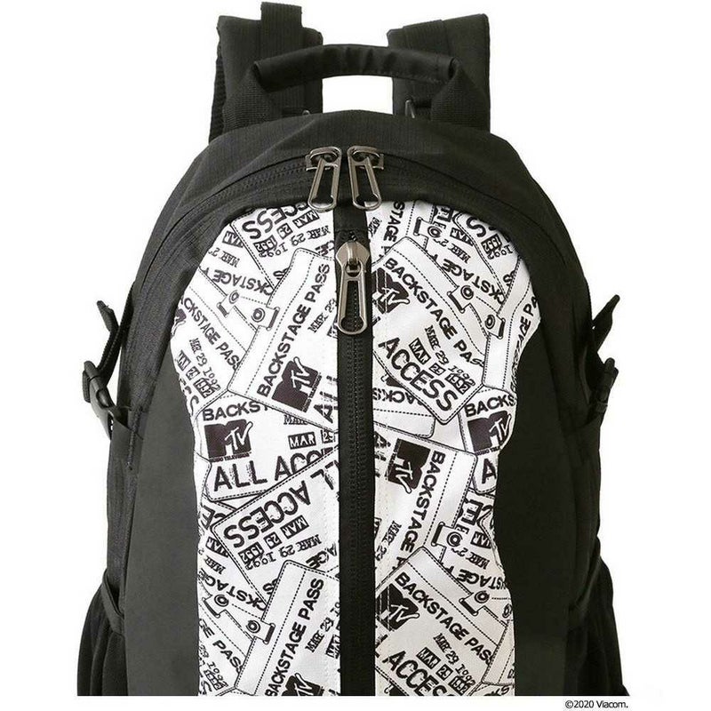 バスケットプレイヤーのために開発されたバッグ/ボール・シューズ・アパレルなど、バスケに必要な装備を全て収納可能/ボール用の大容量ボトムポケット/シューズ用フロントポケット/ペットボトルが収納できるメッシュサイドポケット/ライブなどで使われるバックステージパスを散りばめたMTVオリジナルデザインです。