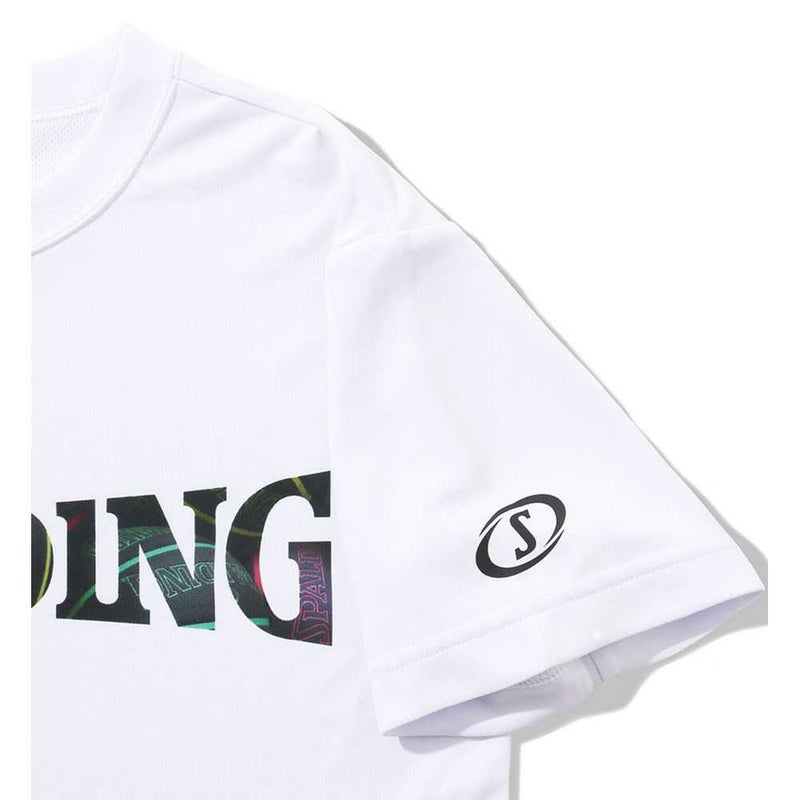 色鮮やかなSPALDING定番ボールのボールパターンをロゴで配したデザインのTシャツ。