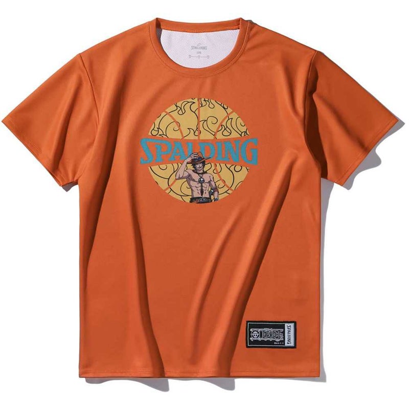 4. スポルディング ジュニア Tシャツ ONE PIECE メラメラの実 ボールプリント SJT25158P( ワンピース コラボ バスケ 半袖シャツ エース キッズ )