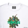 タートルズのメンバーであるレオナルド、ラファエロ、ミケランジェロ、ドナテロがそれぞれのイメージカラーのロゴと一緒にプリントされたTシャツ。