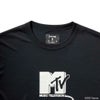 MTVロゴから伸びるプラグとコンセントに見立てたバスケットボールのグラフィックのTシャツです。使用済みペットボトルを使用したエコフレンドリーなリサイクル生地を使用しています。