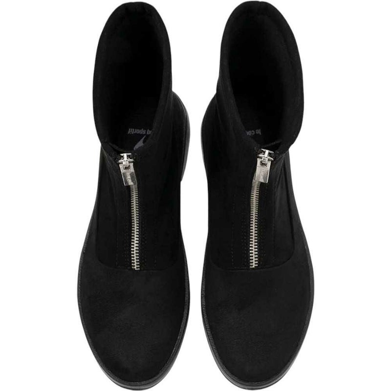 凹凸感やボリュームのあるソールデザインながら、クッション性のあるインジェクションEVAソール仕様にしています。さらにラバーパーツを前足部と後足部に適材配置することで、グリップ性と軽量性を考慮しました。また、アッパーフロントにジッパーを搭載することで、脱ぎ履きしやすいだけでなく、ファッションのアクセントになるようなデザインにしています。秋口からのスタイリングにマッチし、雨や雪でも履ける防水設計で、インソールには発熱蓄熱素材「ベルセラ」を採用し、足元の暖かさにも配慮しました。デザインと機能を両立したモデルです。