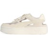 厚底スニーカー、コートラリースカイをベースにアッパーをカットアウトしてサンダルのようなアッパーデザインを融合させたニューモデルを開発。