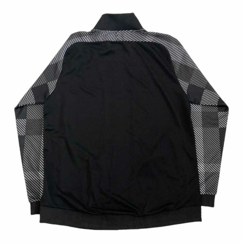 吸汗速乾性の高いポリエステルジャージ生地に袖部分をオリジナルの昇華プリントを施したハーフジップが付いたジャージジャケット。