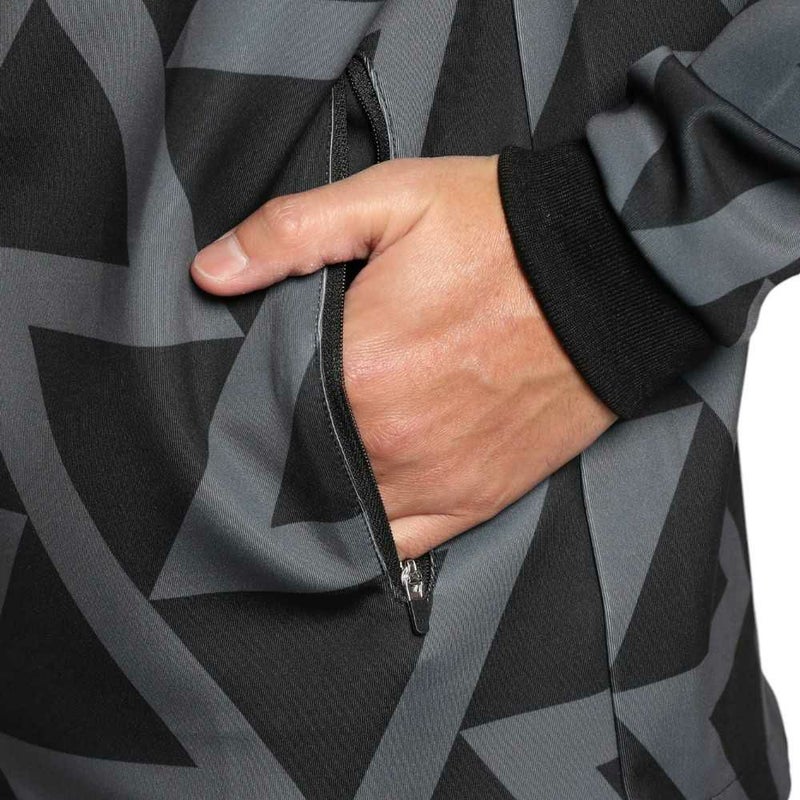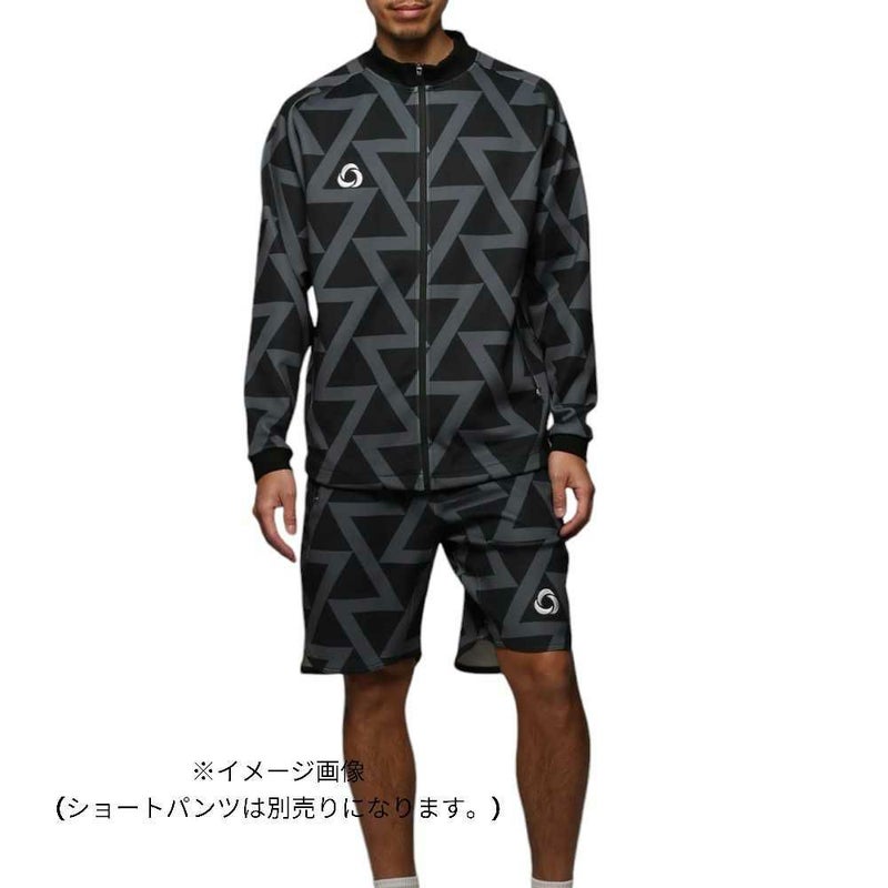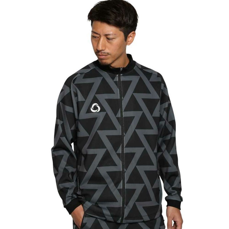 パターンを全面に使用したジャージジャケットです。