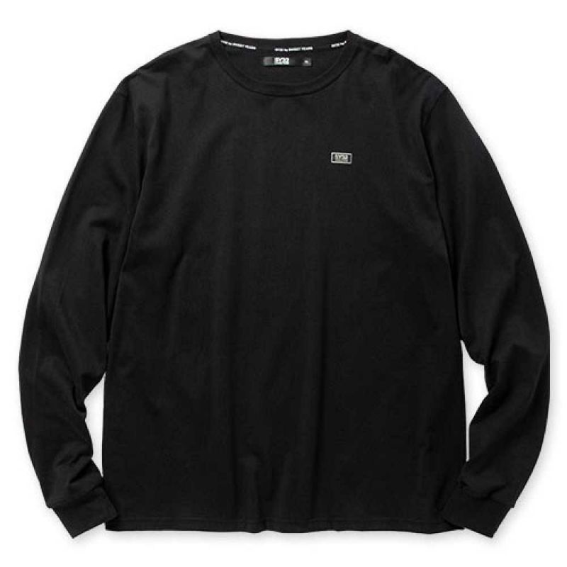 ミニメタリックタグを左胸に配置したロングスリーブTシャツ。