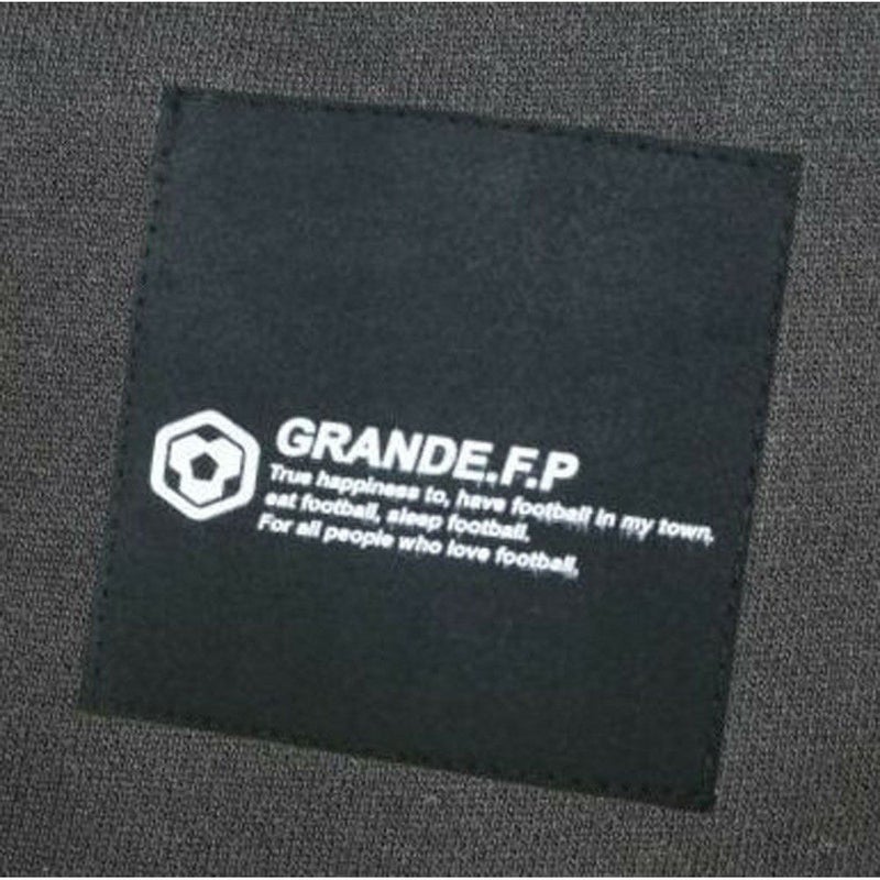 グランデ.エフ.ピー.定番.12.0オンス.ヘビーウェイトのスウェット素材を使用し、左胸にサッカーボールをイメージした六角形のシリコン素材のワッペンを施し、背中に、ニューGRANDE.F.Pメッセージ入りのフェイクスウェードワッペンを、