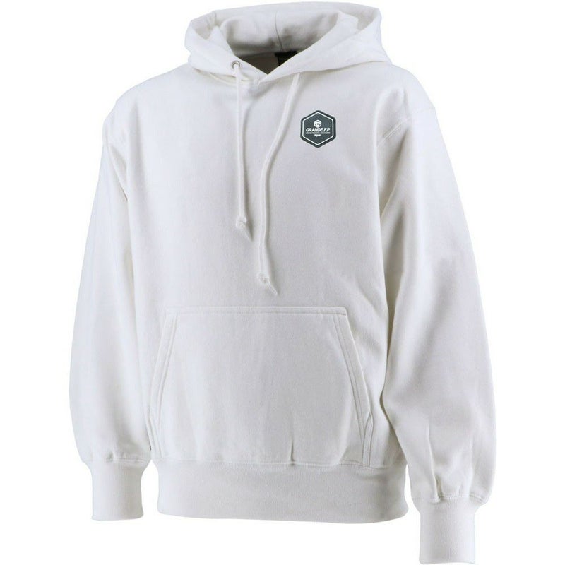右袖には、GRANDE.FP.刺繍ワッペンを、さりげなく施した、アパレルラインのニュー定番スウェットパーカーの新作。