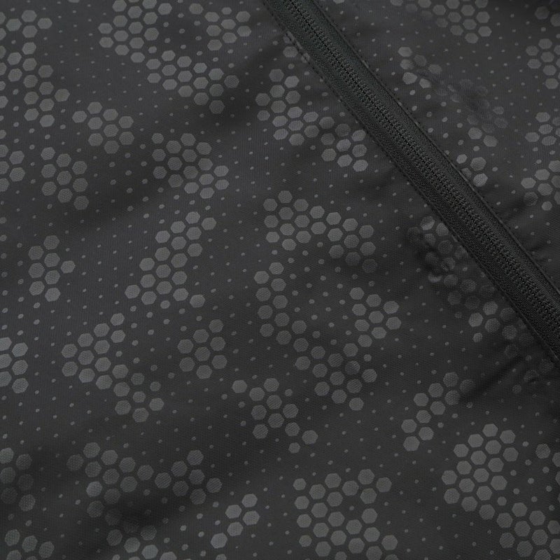 素材:表/防風・撥水ポリエステルドビー(Hex Beastエンボス加工)(ポリエステル100%)、裏/トリコット起毛裏地(中綿入り)(ポリエステル100%)