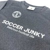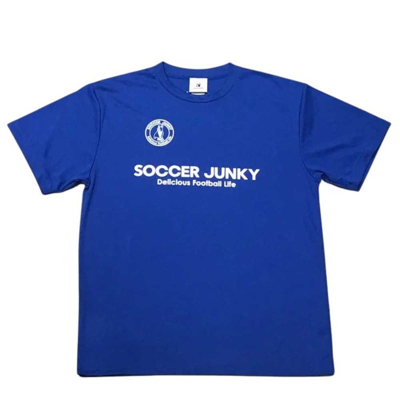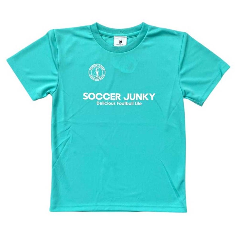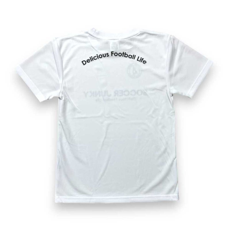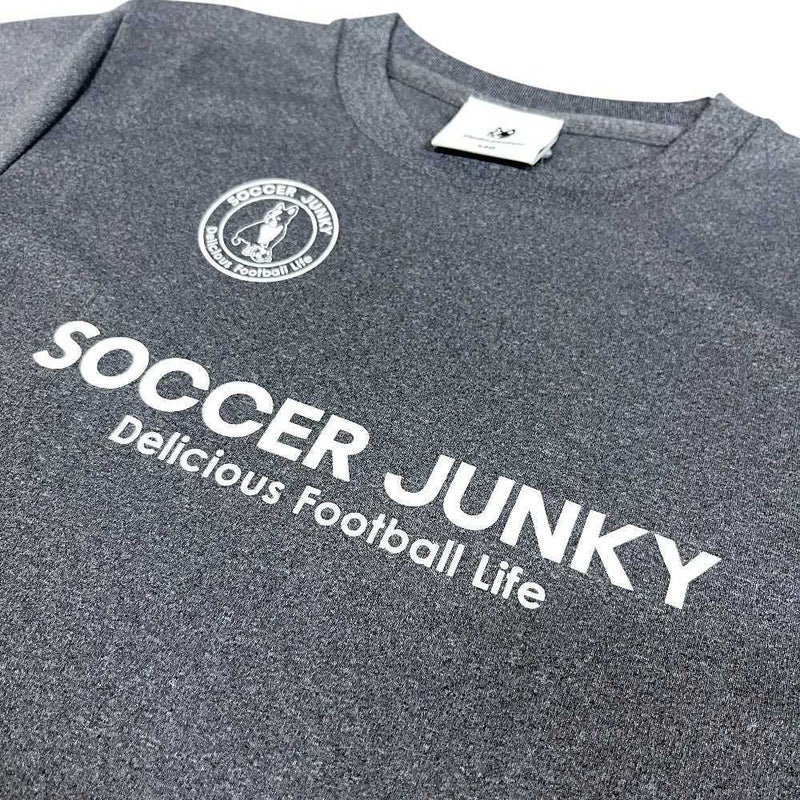サッカージャンキーの定番になりつつるサークルロゴとブランドメッセージが背中にプリントされたプラTEE