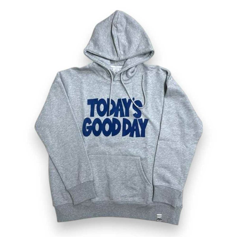 『TODAY GOODDAY』プリントされたパーカー。