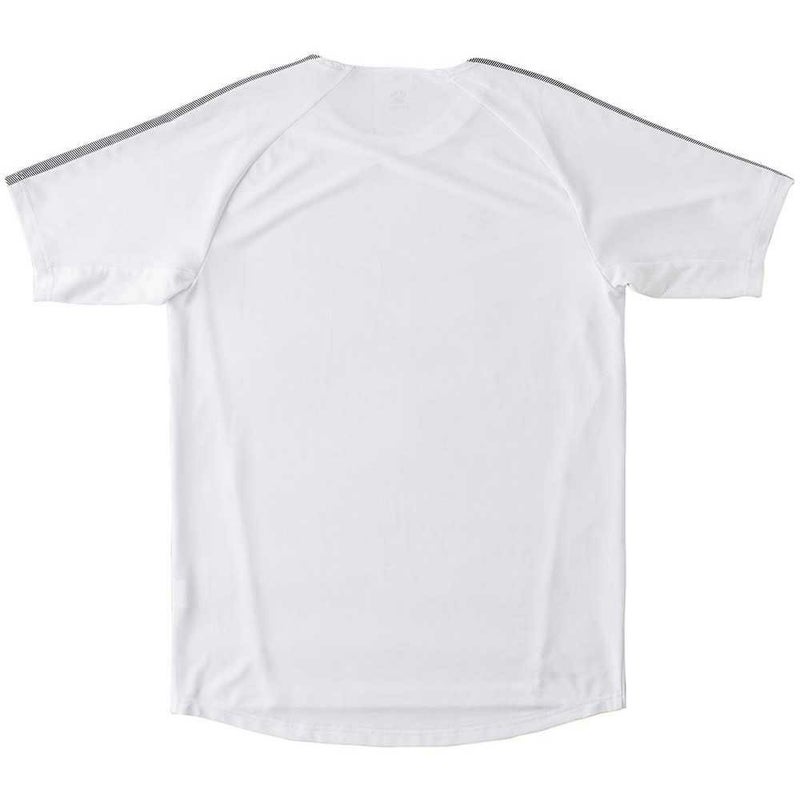 クルーネック、ボディはストレッチ素材、脇パネルメッシュ仕様
