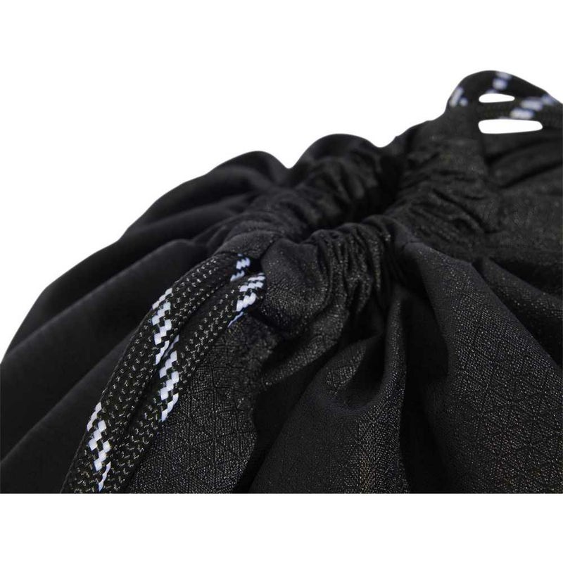 ジムに向かうときや、ちょっとした用事で外出するときに便利な、必携アイテムだけを入れて身軽に背負えるジムサック。開口部を絞るドローコードが、さっと肩に掛けられるショルダーストラップになっている。さらに小物の出し入れに便利な、ジップポケットも付いている。この製品には、リサイクル素材を50%以上使用している。