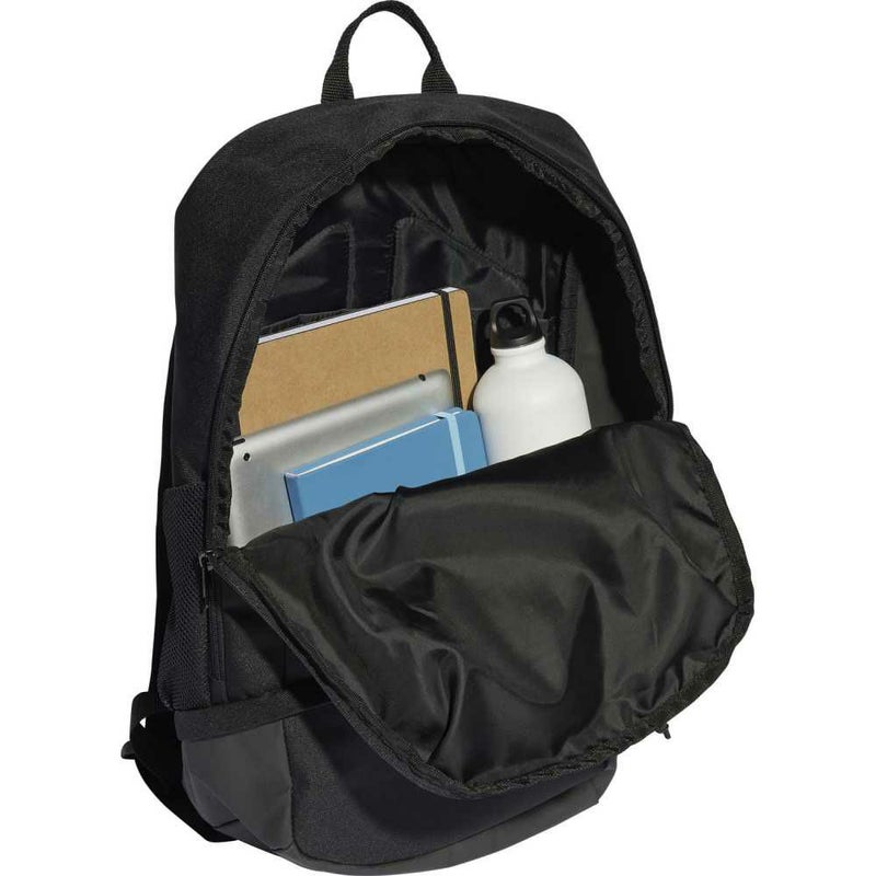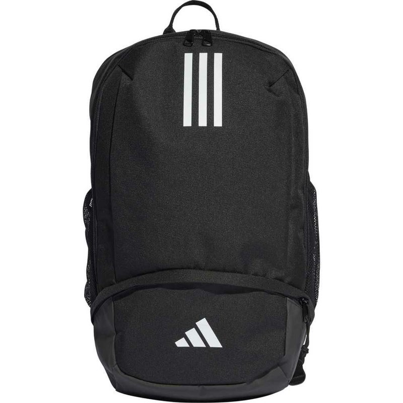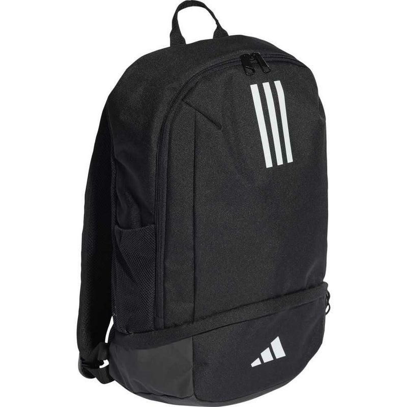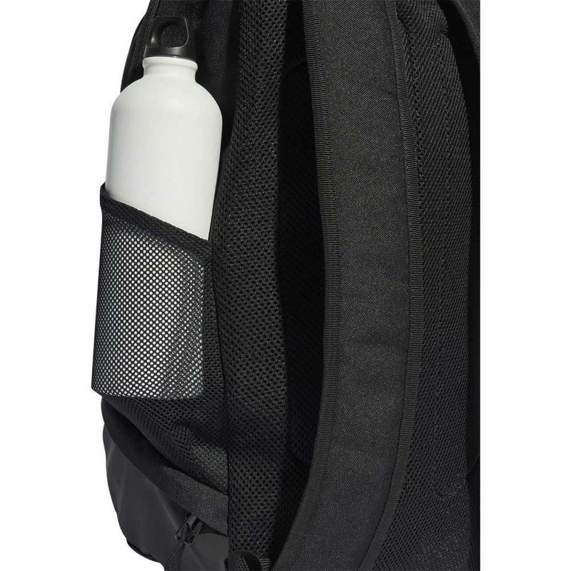 サッカースタイルを見せつけよう。中央上部に浮き上がる短いスリーストライプスとスクリーンプリントの3バーロゴがアクセントの、サッカーへの情熱も詰め込めるアディダスバックパック。