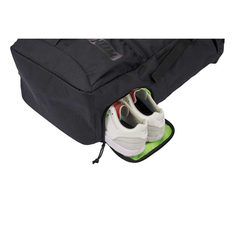 5号球に対応可能なボール収納はフラップ下へ、シューズ収納は側面下部に配置。