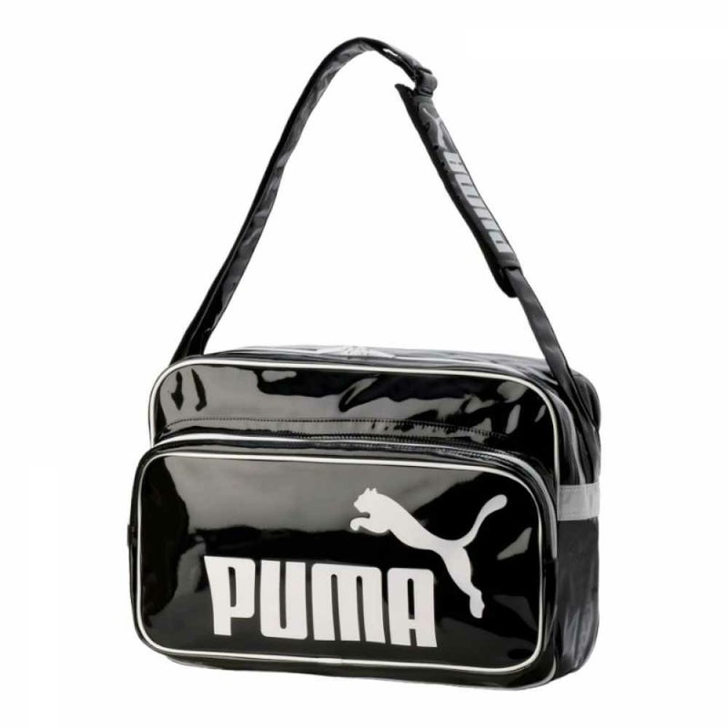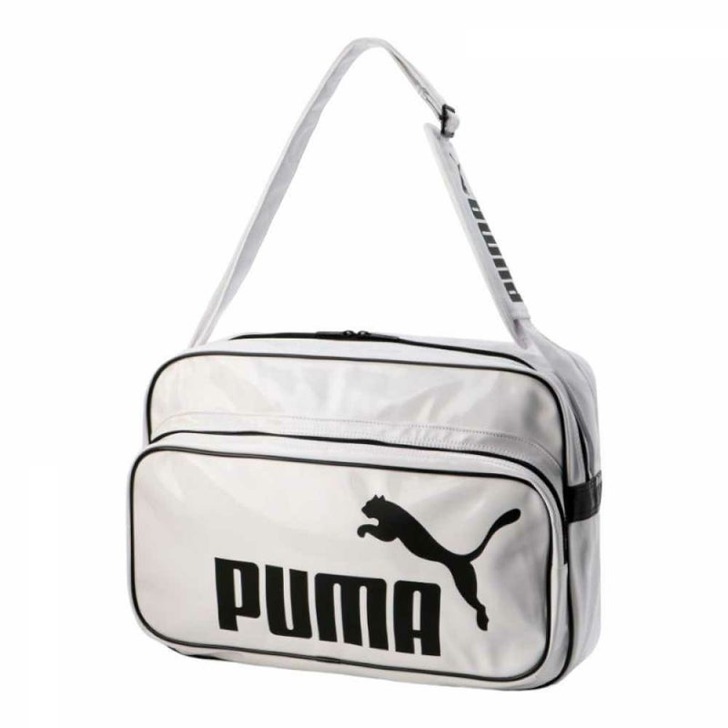 独特な光沢感があるPUを用いたLサイズのショルダーバッグです。ブランドロゴを配した幅広めのストラップは、肩に食い込まず持ち運びしやすい優れもの。ファスナー付きのフロントポケットで効果的に荷物を収納できます。大きめのプーマキャットロゴでメリハリをプラスしました。使い勝手の良いスクエアーフォルムで幅広いシーンに活躍します。お子様の部活用としてもおすすめです。