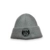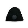 エンブレムが印象的な、折り返しニットキャップ