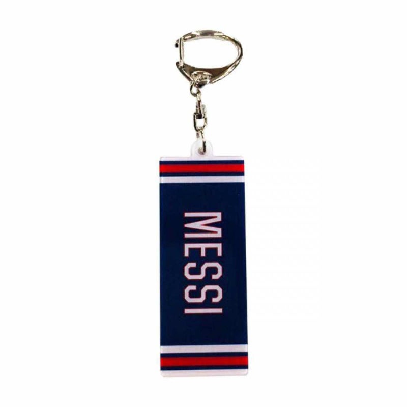 メッシのナンバーとエンブレム入りキーホルダー。