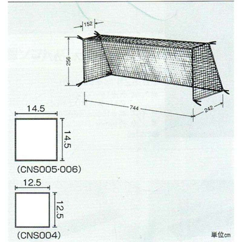 ■高さ256X幅744X奥行下242X奥行上152X網目14.5cm