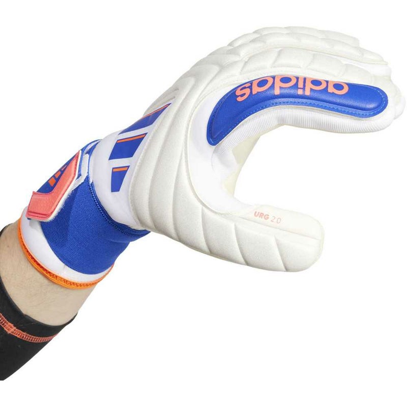 新たなカタチでボールとコネクトすることを目指した、アディダスコパ PRO ゴールキーパーグローブ。手の甲に定番のラテックスメッシュを採用したグローブには、手首に心地よくフィットする伸縮性のあるリストストラップが付いている。耐久性を高めるアブレージョンゾーンを設けたURG 2.0パームが、試合の流れを変えるグリップ力を発揮する。指まわりにぴったりとフィットするネガティブカットにより、ボールの感触が直に感じられる。