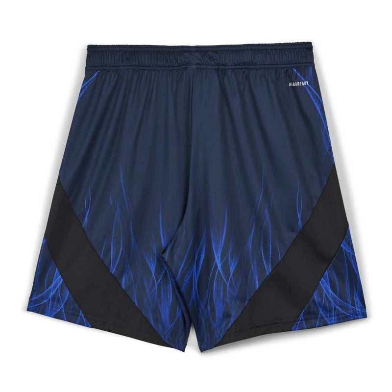 チームのホームカラーのブルーをベースに、日本の力強さを映し出すかのような、うねりを上げて燃えるハンドペイントの青い炎のグラフィックをあしらった、日本代表のホームショーツ。
