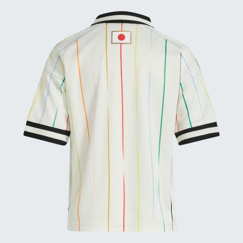 「COLOURS BEYOND THE HORIZON」というテーマにインスピレーションを得たデザインは、日本サッカーファミリーの結束とスピリットを表現している。印象的なストライプグラフィックには、各選手を表す12色の鮮やかなカラーを採用。中央のストライプはチームの根底にある家族のような「一体感」を象徴している。