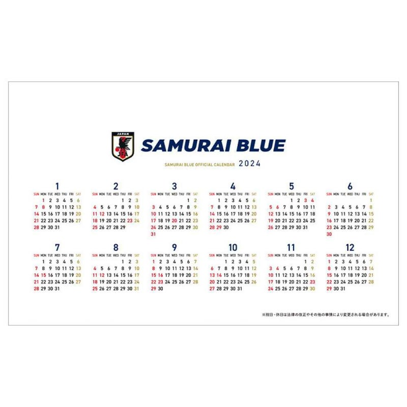 JFA 2024年 サッカー日本代表カレンダー (SAMURAI BLUE) 卓上タイプ JFA24002