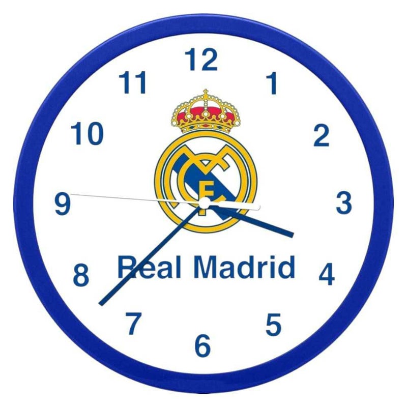 中央にレアル・マドリードのエンブレムがデザインされた壁掛け時計。