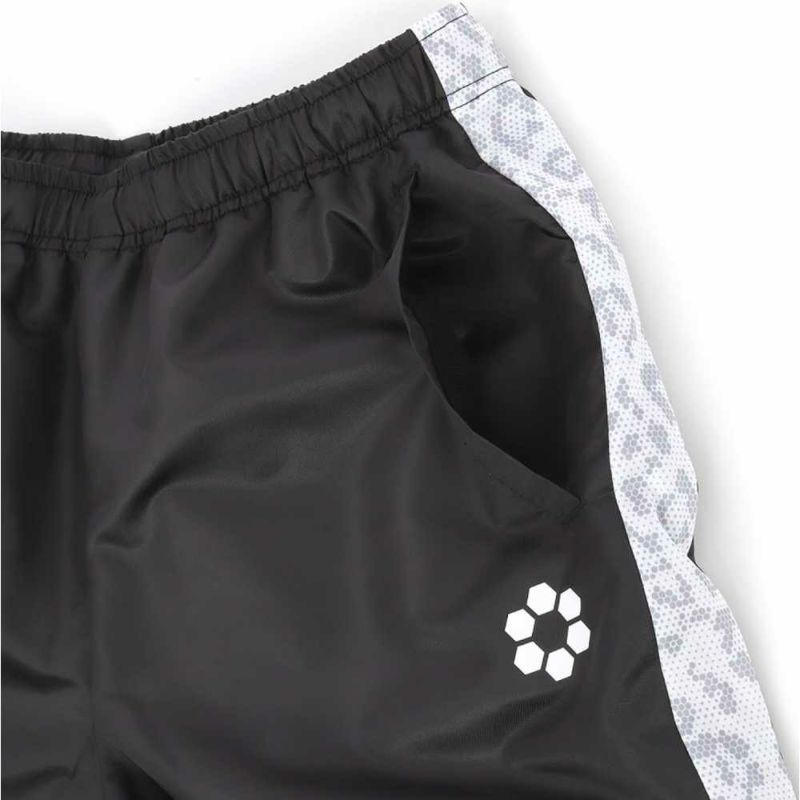 高い防風性と撥水性を兼ね備えた高級感のあるシャイニードビー素材。裏地には肉厚のトリコット起毛を表裏で配し、更なる保温性と快適な動きを同時に兼ね備えます。膝下のタフタ裏地とロングファスナー仕様は快適な着脱を実現します。HEX BEASTラインで選手に自信を与えています。