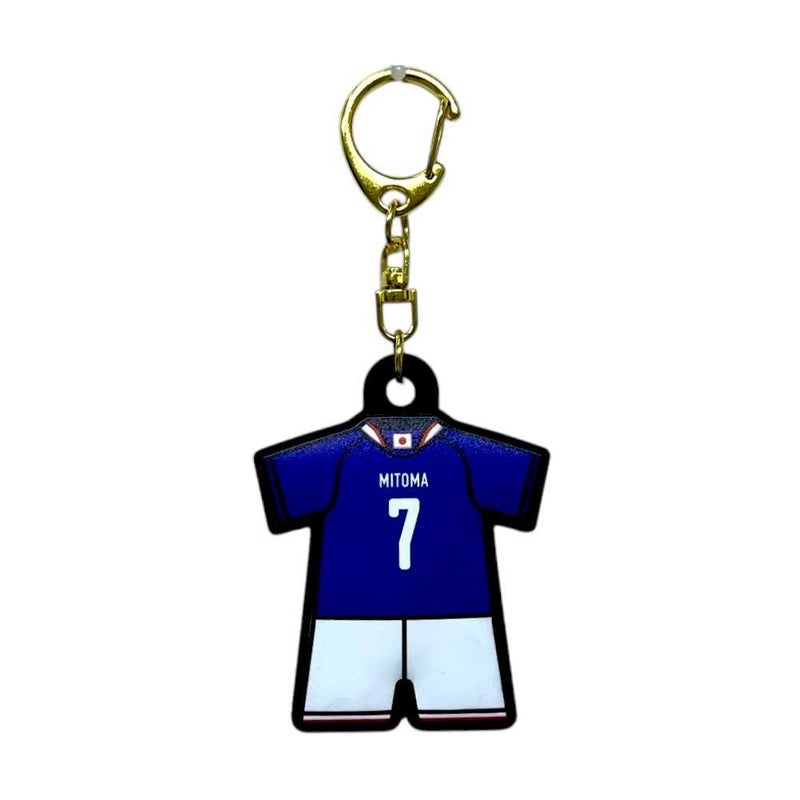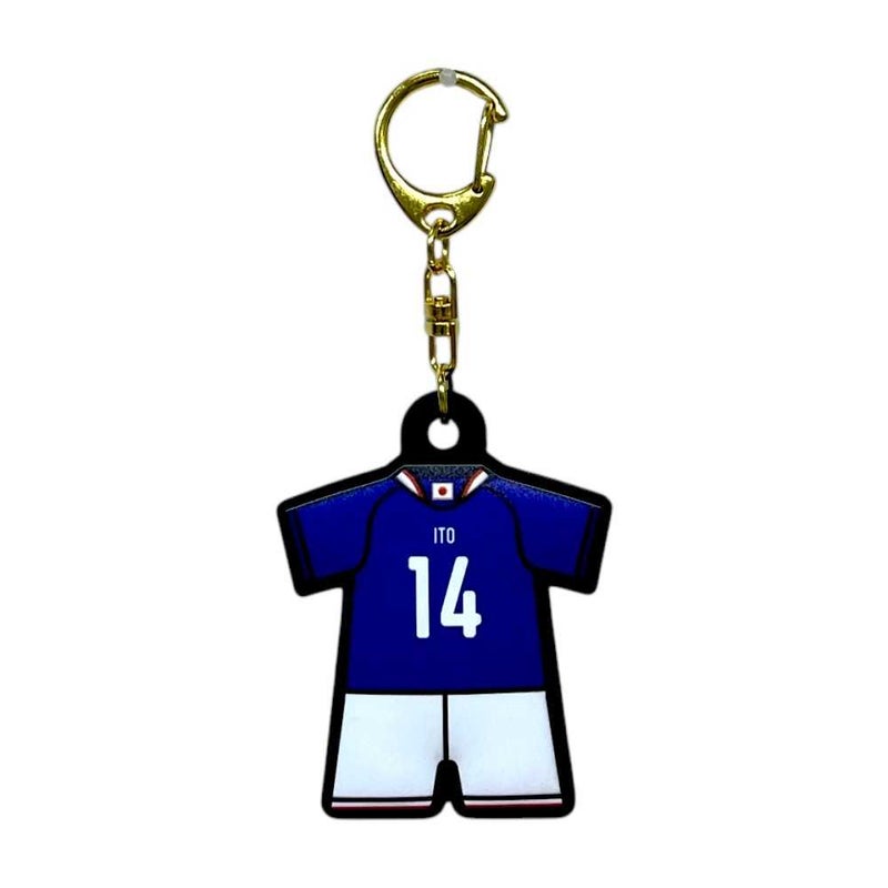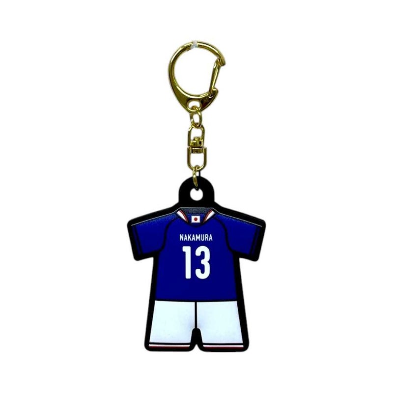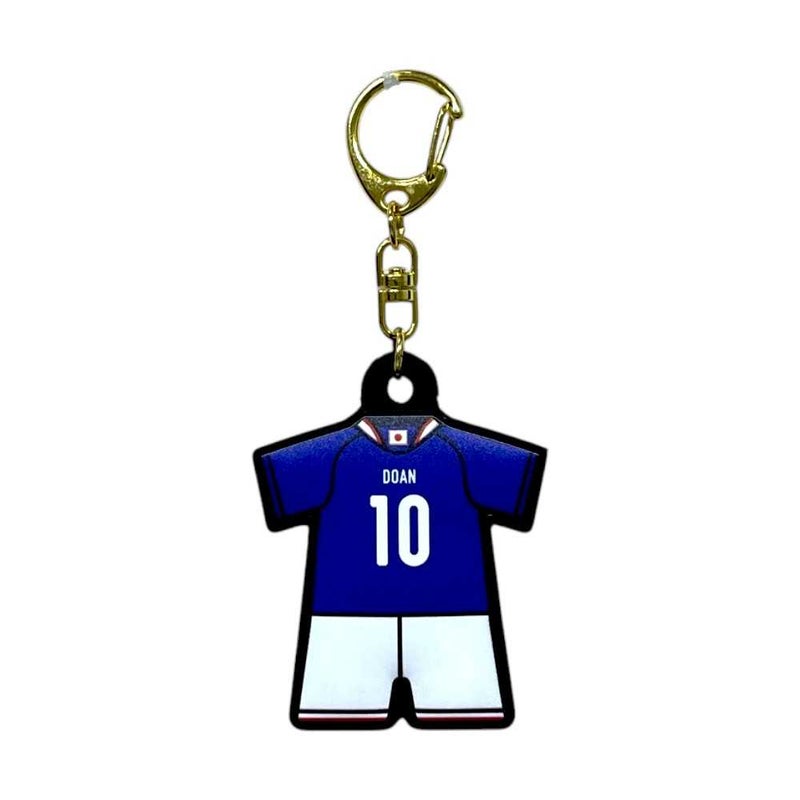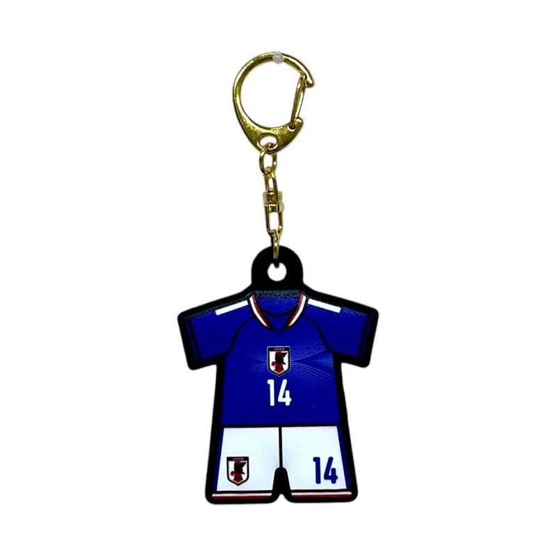 ユニフォーム型ラバーキーホルダーを持ってサッカー日本代表を応援しよう。