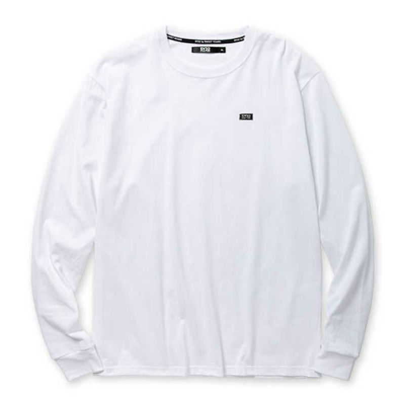 ミニメタリックタグを左胸に配置したロングスリーブTシャツ。