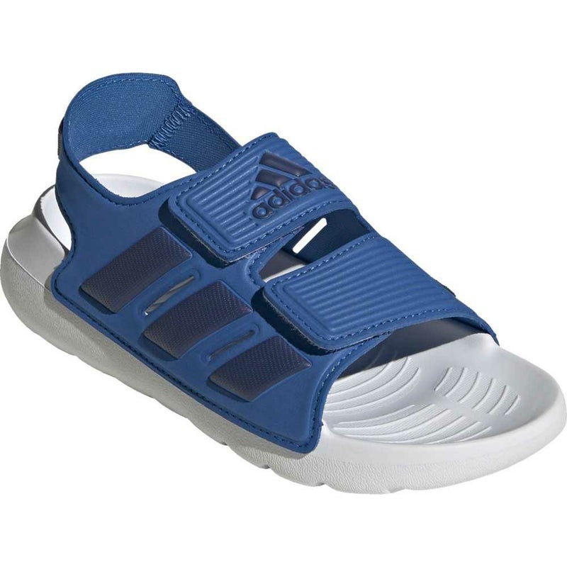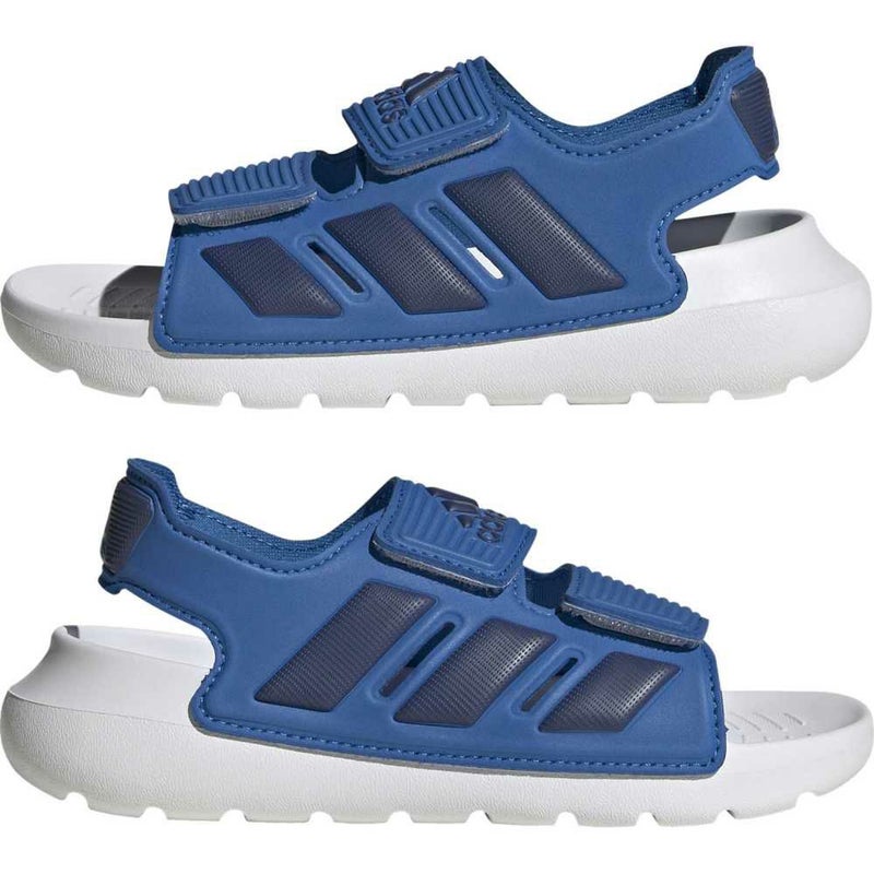 大胆なスリーストライプスと調節可能なストラップを備えたアルタスイム 2.0 サンダルが、小さな冒険者に一日中快適な履き心地をもたらす。