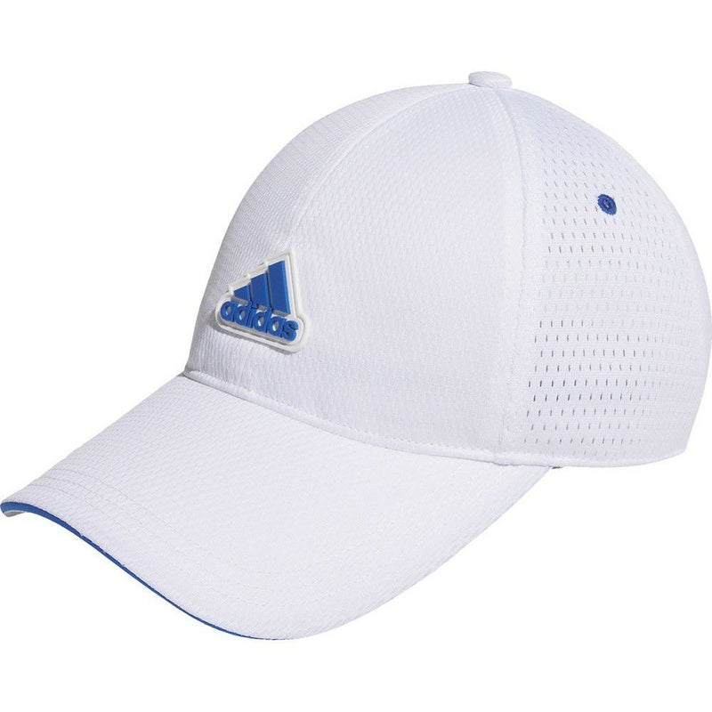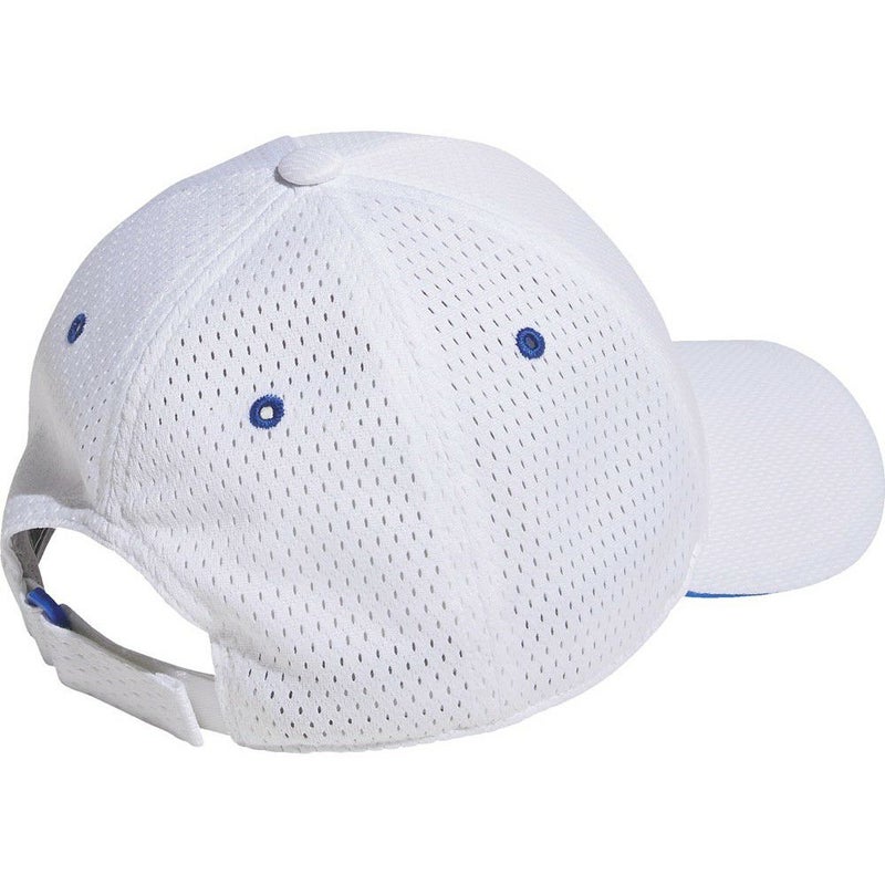 このジュニア用アディダスキャップは、通気性に優れたモックアイレット素材を使用し、暑い日も頭を快適に保つ。
