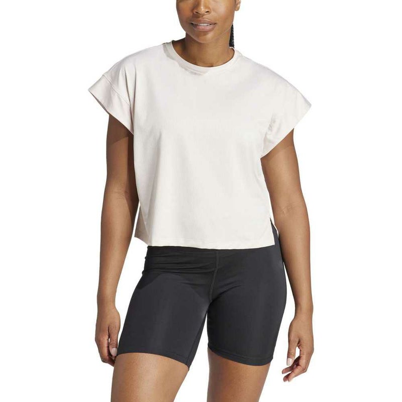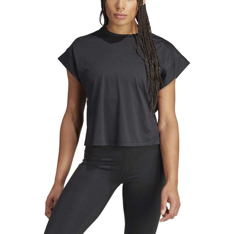 ヴィンヤサヨガ、バーエクササイズ、ピラティスなどに適した、あらゆる動きをサポートするTシャツ。バランスポーズや、同じ体勢を長くキープするときなどに、AEROREADYが汗を素早く吸収して身体をドライに保つ。
