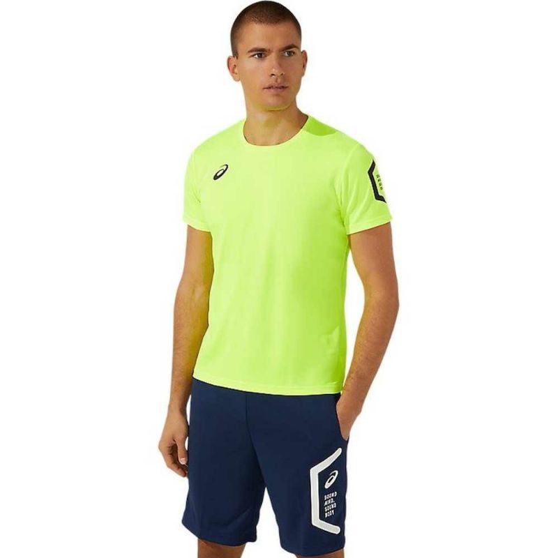 HEXAGONグラフィックにはアシックス企業スローガンでもある「SOUND MIND, SOUND BODY」を表記。優れた吸汗速乾性を追求した長期継続のショートスリーブトップ。