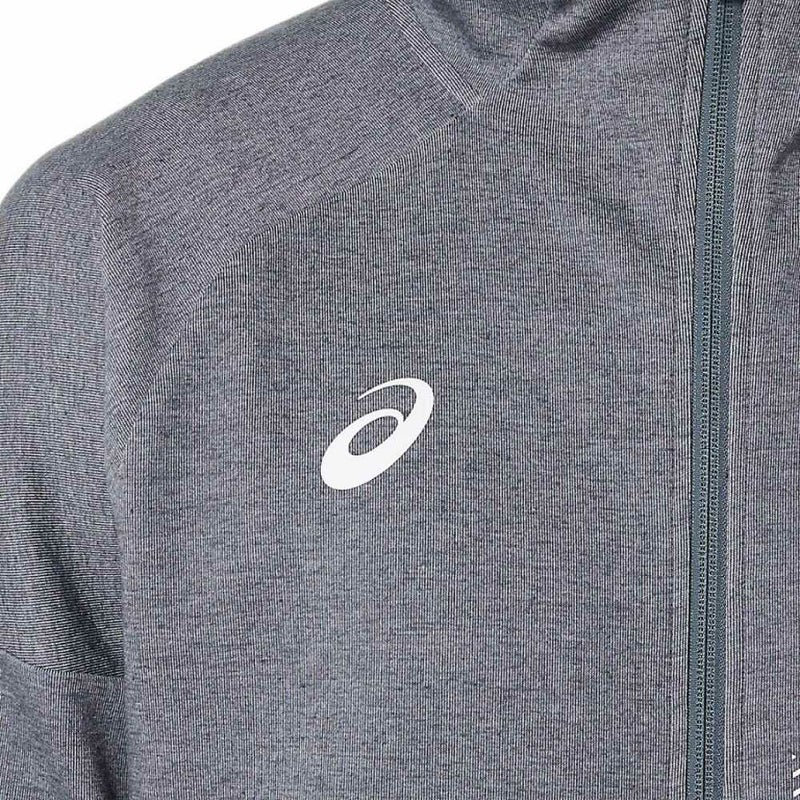 両サイドには小物の収納に便利なポケットを装備し、裾と袖口はリブ仕様。デザインアクセントのASICS JAPONISM CONCEPTのグラフィックTABはリフレクター仕様。背中のバックセンターラインは再帰反射性プリント。