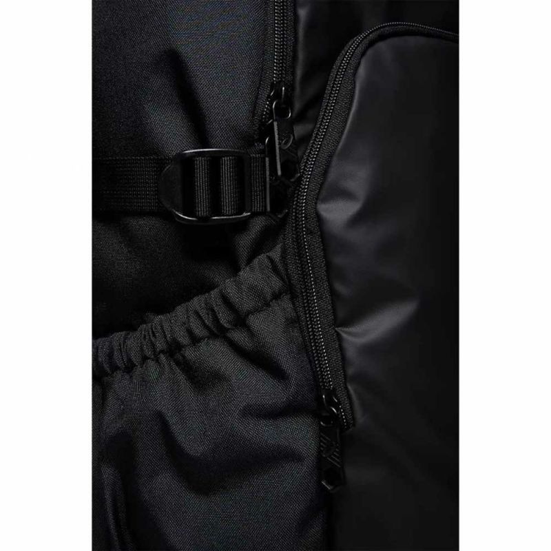 本体底部にシューズ収納スペース搭載(アシックスミドルカットシューズ30cmまで収納可能)。フロントフェイスには、マットな素材を配置し、見栄えをアップさせました。マーキングスペースも大きく確保したパックパック容量約40L。ショルダー部分には、厚さ約10mmのクッション性のある芯材を採用し、更に肩に接する面には、クッション性のあるメッシュを採用しています。