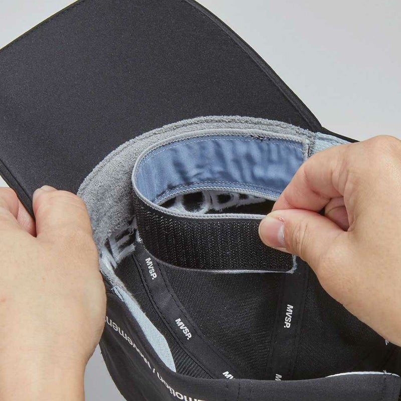 正面と額部分に、気化熱促進をする吸水ポリマーを使用した「MAGICOOL」を使用したクーリングキャップ。