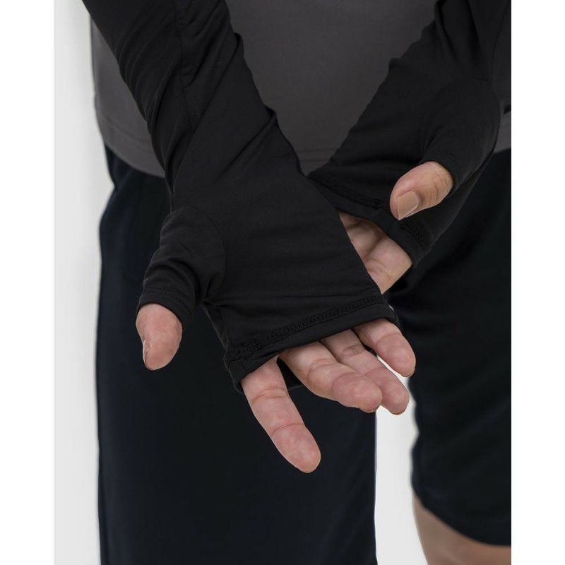 着用しているウェアの袖に隠れ、手の甲まで覆える長め丈感。好みで選べる、2種類のロゴカラー展開。
