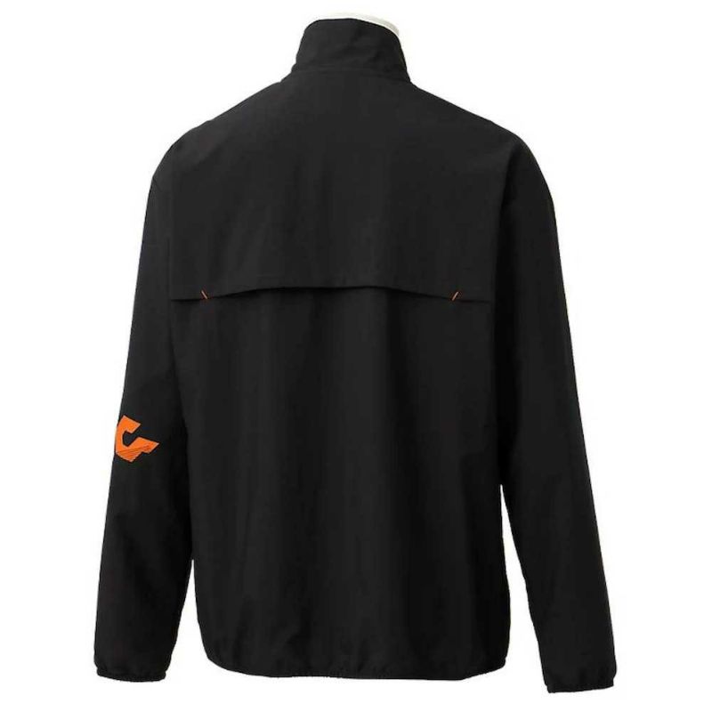 優れたはっ水性を追求した杢布帛素材を採用。背ベンチレーション付きで衣服内の通気性を追求。背ベンチレーション部の裏地はメッシュ素材を採用。